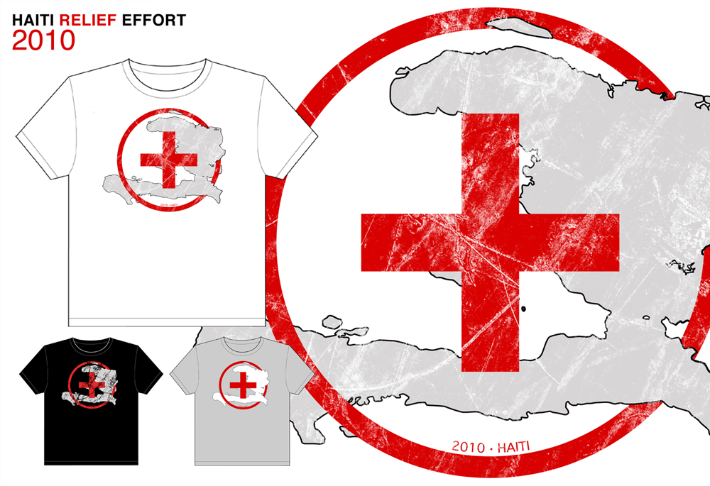 This design was donated to multiple Haiti relief effort organizations after the 2010 Haiti Earthquake. The design was used on fundraising merchandise.